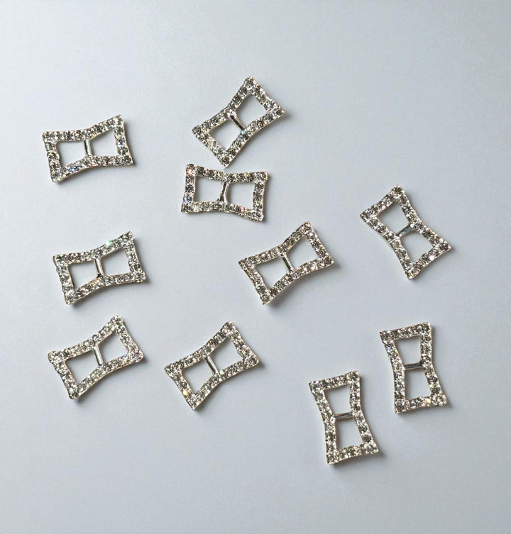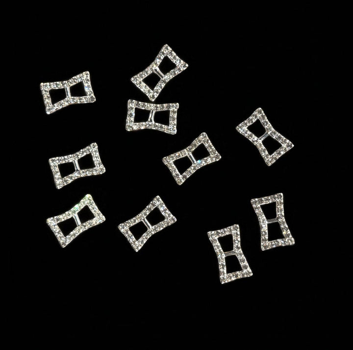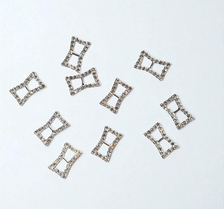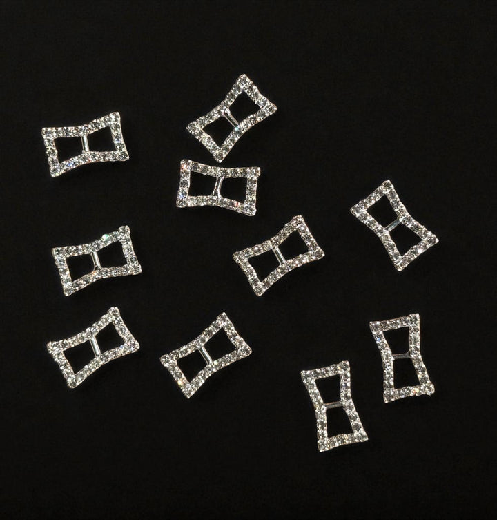 10 Curved Edge Grade A Rhinestones Ribbon Slider Buckles