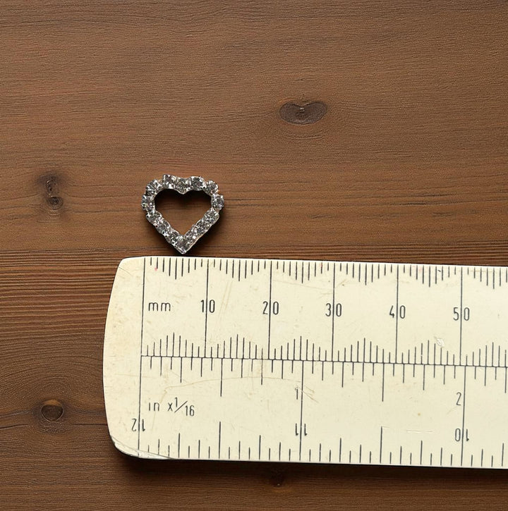 MINI Heart Rhinestone Crystal Diamante Embellishments These are just exquisite and beautifully made for Syntego....Top quality Buckle made with 14 Grade A Rhinestones....they really sparkle. Fits 3mm - 5mm ribbon....Approx size 1.3mm Price Is For A Pack Of 10.