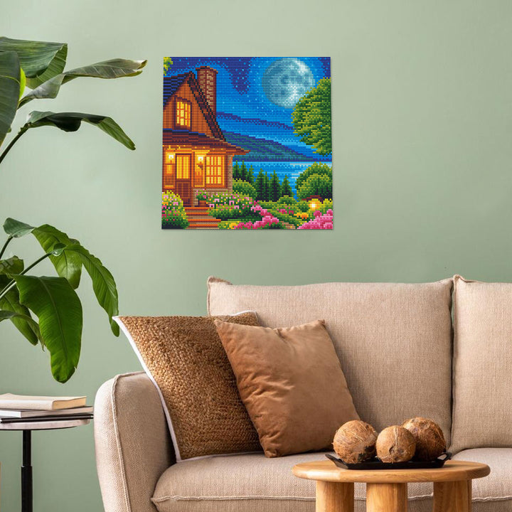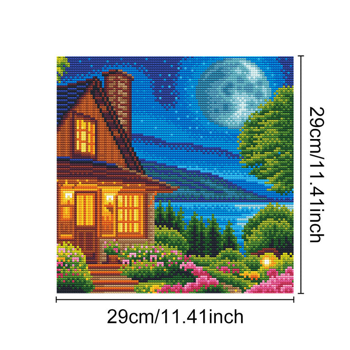 DIY LED Light Up House on the Lakeside Diamond Crystal Embroidery Painting Kit on a Hard Canvas (Approx 30cm x 30cm)