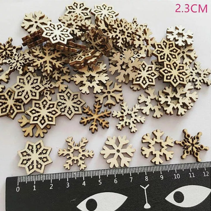 100pcs Rustic Wooden Christmas Snowflakes Confetti Embellishments For Crafting Decoration