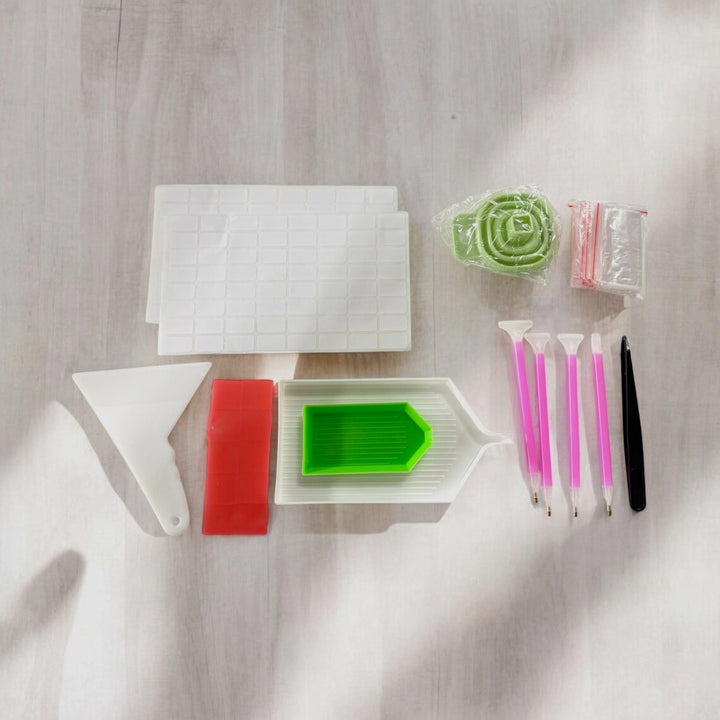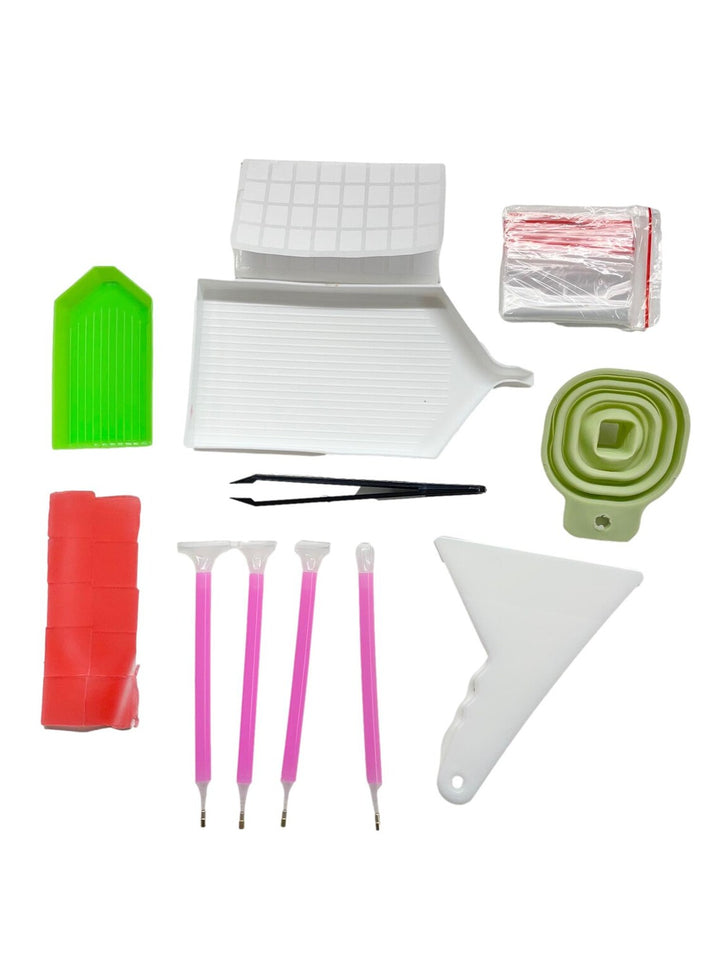 - Convenient Accessories: Comes with essential accessories, including 4 diamond painting pens, multiple glue wax pads, tweezers, a funnel to easily transfer your diamonds, 1 small and 1 large diamond trays, sticker labels, extra baggies and a scraper to easily remove diamonds if a mistake is made. This makes it a comprehensive kit for both beginners and experienced diamond painters.