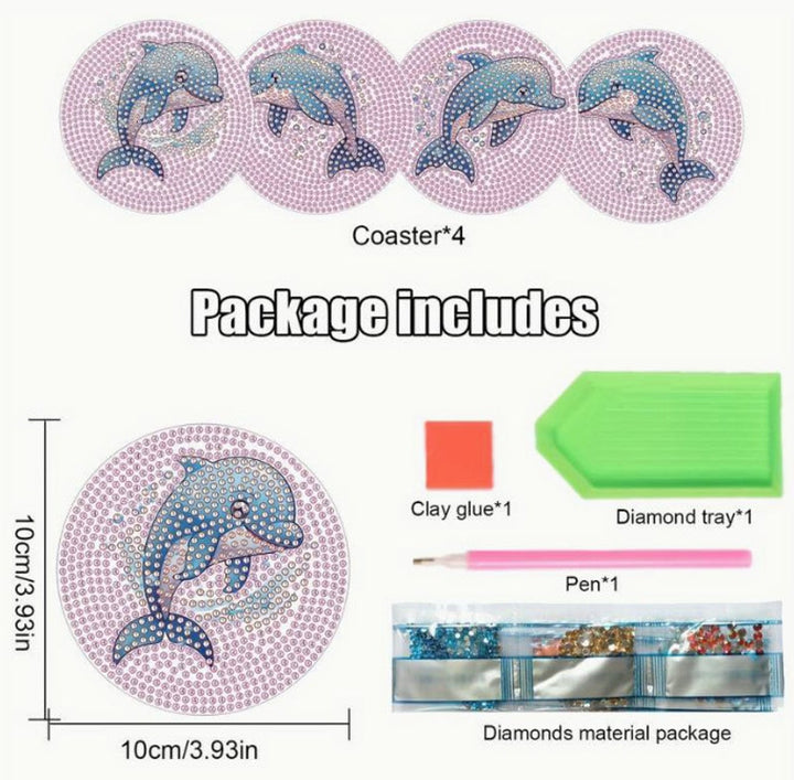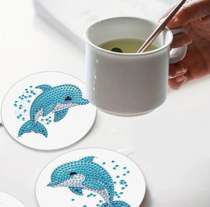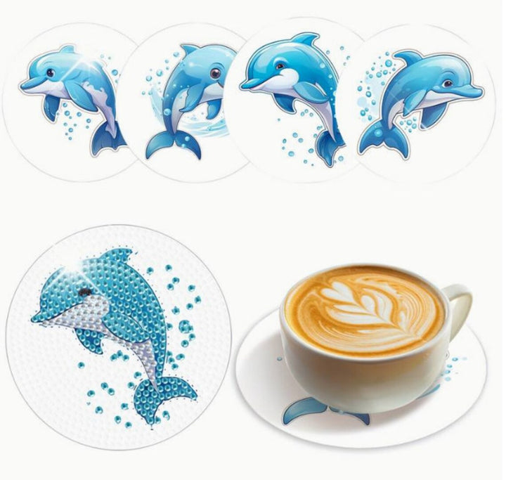 4pcs 5D DIY Diamond Painting Coasters Dolphin Coasters
