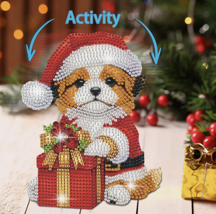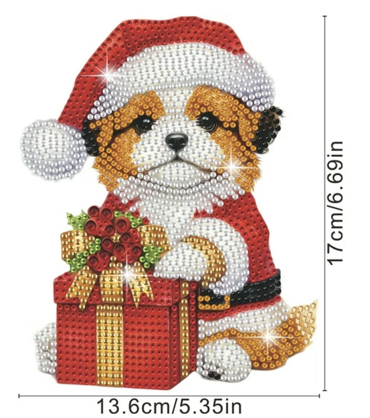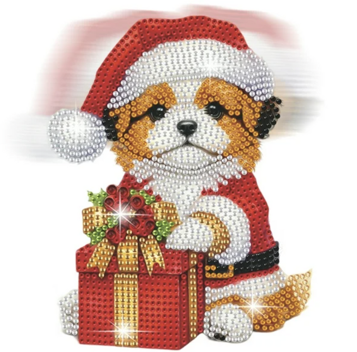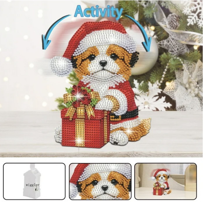 5D DIY Diamond Art Shaking Head Festive Christmas Puppy Kit.