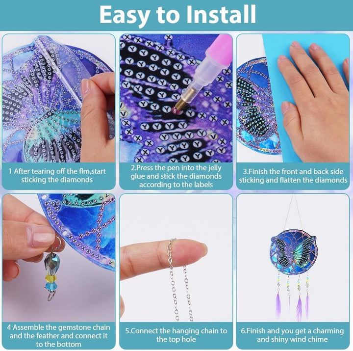 5D DIY Mystical Butterfly Feather Dream Catcher Diamond Art Kit Crystal Embroidery Rhinestone Decoration Peel off the plastic layer to get a very sticky surface which ensures the diamonds wont fall off and will securely stay on Easy to use: Simply press the pen into...