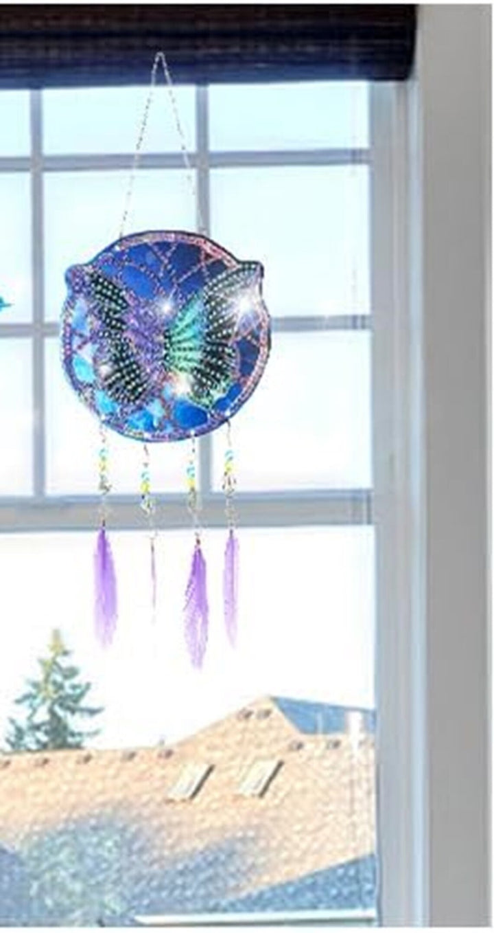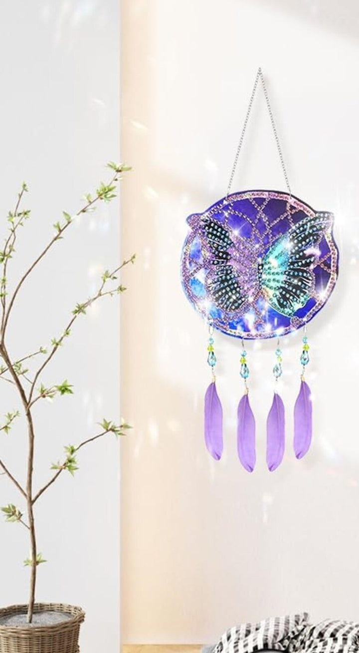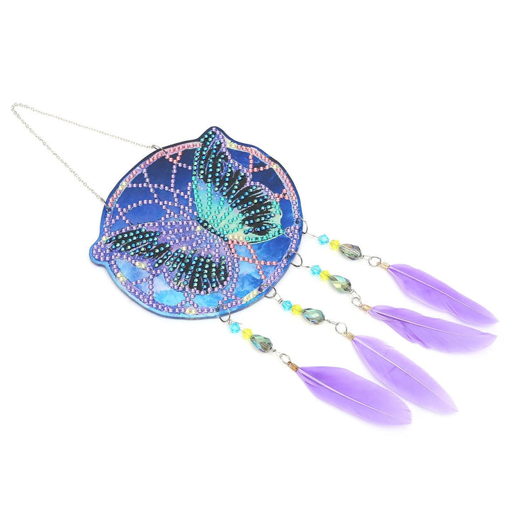 - 5D DIY Mystical Butterfly Feather Dream Catcher Diamond Art Kit Crystal Embroidery Rhinestone Decoration