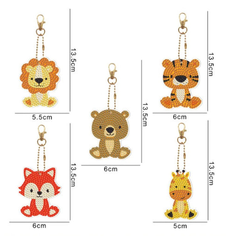 - 5pcs 5D DIY Assorted Cute Animal Diamond Art Keyrings by Numbers Kit for Adults Double Sided Rhinestone Craft Pendant