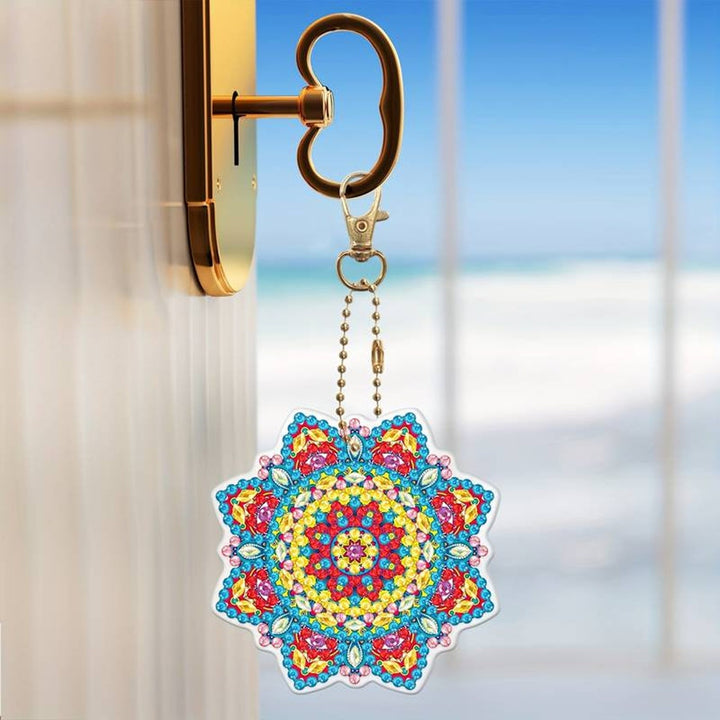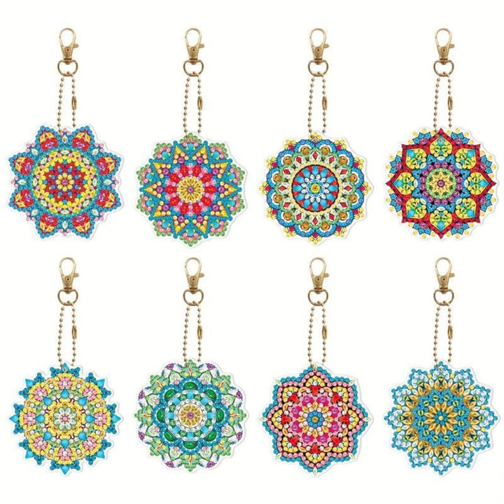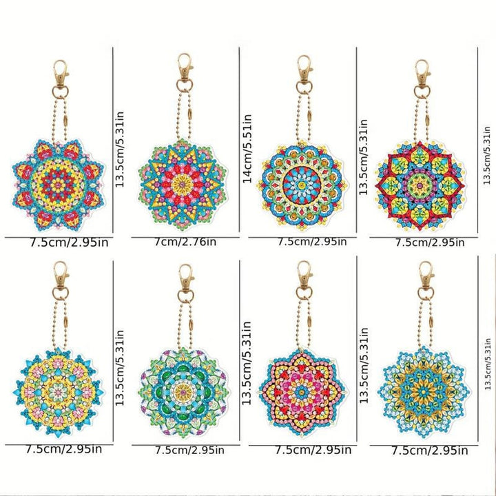 8 Pcs 5D DIY Assorted Medallion Flower Design Diamond Painting Keyrings