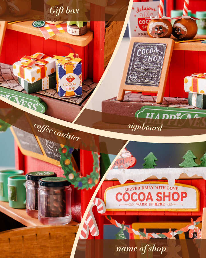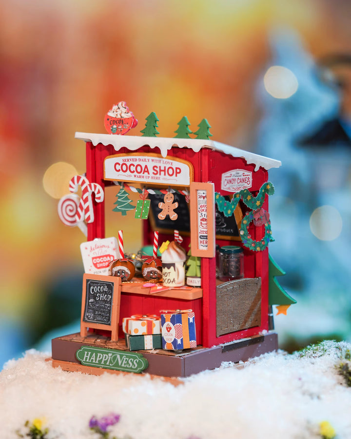 Miniature Cocoa Shop Kit for DIY Decoration - Christmas Fireplace Craft Kit for Adults, Perfect Holiday Gift