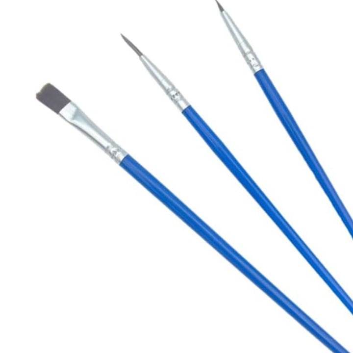 Kit includes: 1 numbered canvas, 3 different sized paint brushes, corresponding paints, screws and wall hanging tools .