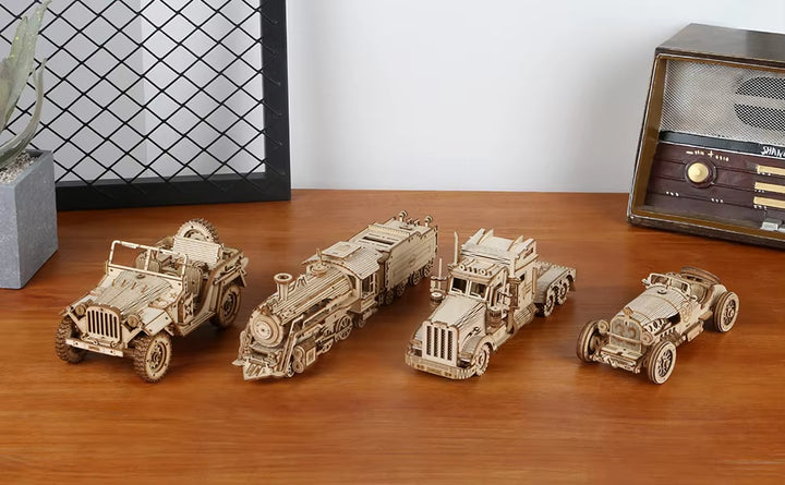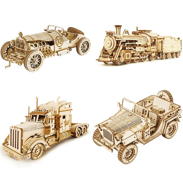 Introducing the Rokr 3D Wooden Puzzle Montessori Toys, featuring a captivating collection of model building kits including a Steam Train, Army Jeep, and Heavy Truck. Designed for children aged 8 and above, these intricate puzzles not only provide hours of entertainment but also serve as an educational tool that fosters creativity, critical thinking, and fine motor skills. Each model is crafted from high-quality plywood, ensuring durability and a satisfying tactile experience as kids assemble their vehicles. Perfect for family bonding or individual play, these puzzles can be used in various settings, from classrooms to home workshops, enhancing the learning experience through hands-on engagement.