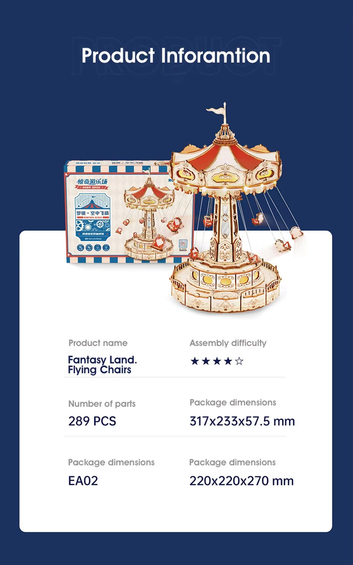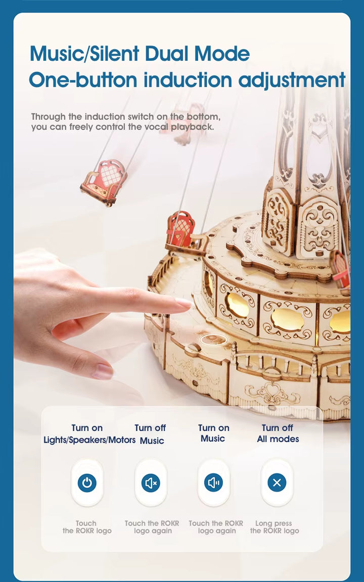 ROKR Magic Amusement Park Swing Ride Wooden Toy DIY Music Box Moveable 3D Wooden Puzzle for Kids Gifts for Christmas