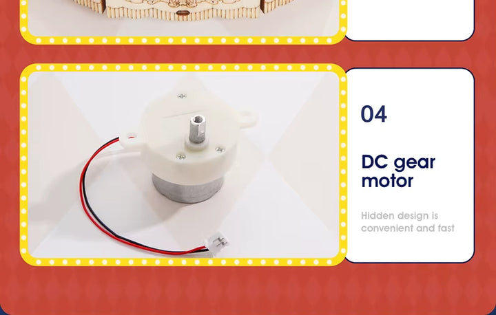 With built-in movement, the seats will be suspended from the rotating top of the carousel with music and lights on by simply touching the button. Build this exquisite 3D wooden puzzle with your hands and enjoy the ride!