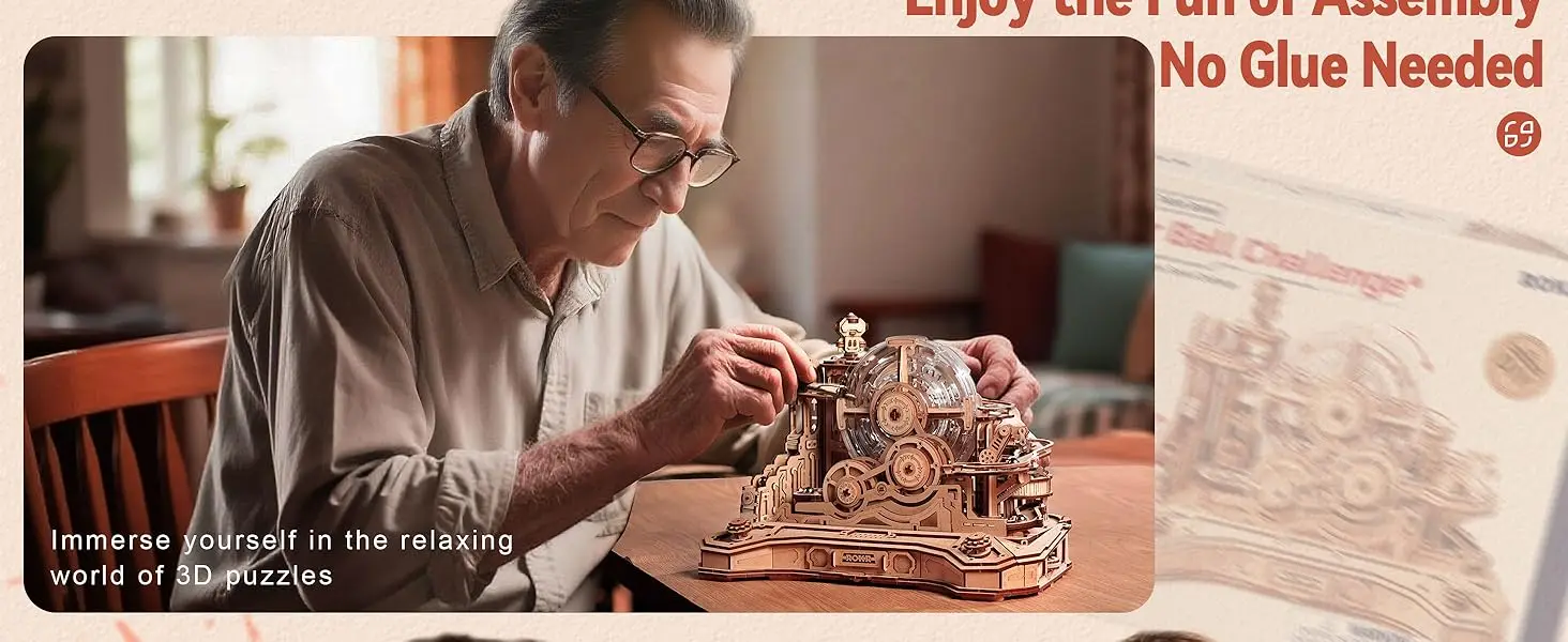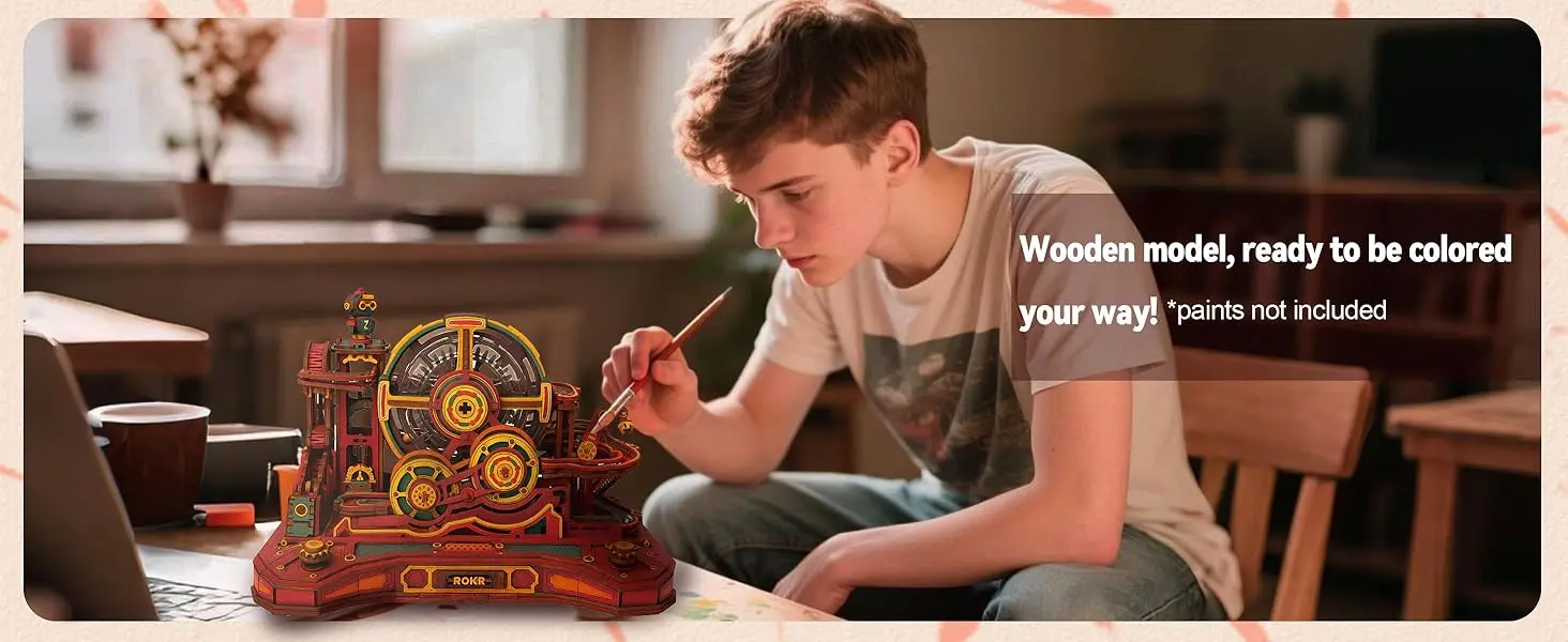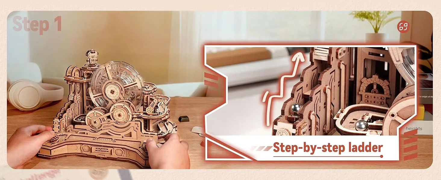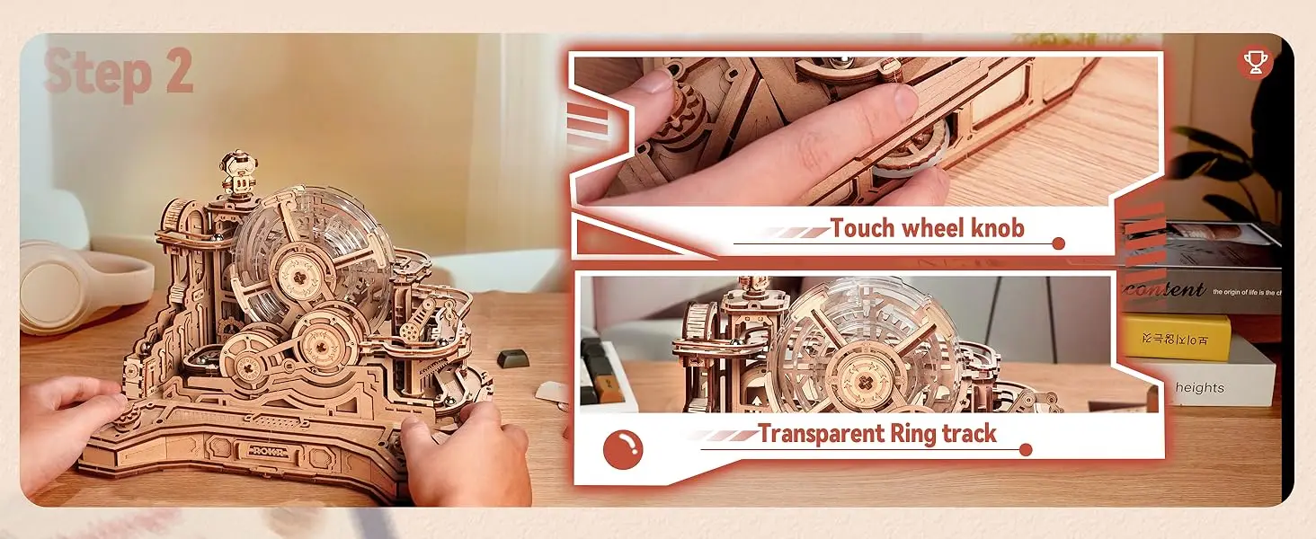 The ROKR Gear Ball Challenge combines the thrill of a marble game with the satisfaction of precision model building. Designed in the shape of a retro game controller, this innovative 3D wooden puzzle features a self-lifting marble elevator, winding ramps, and a celebratory victory bell. Build your own interactive game and experience the joy of both crafting and playing.